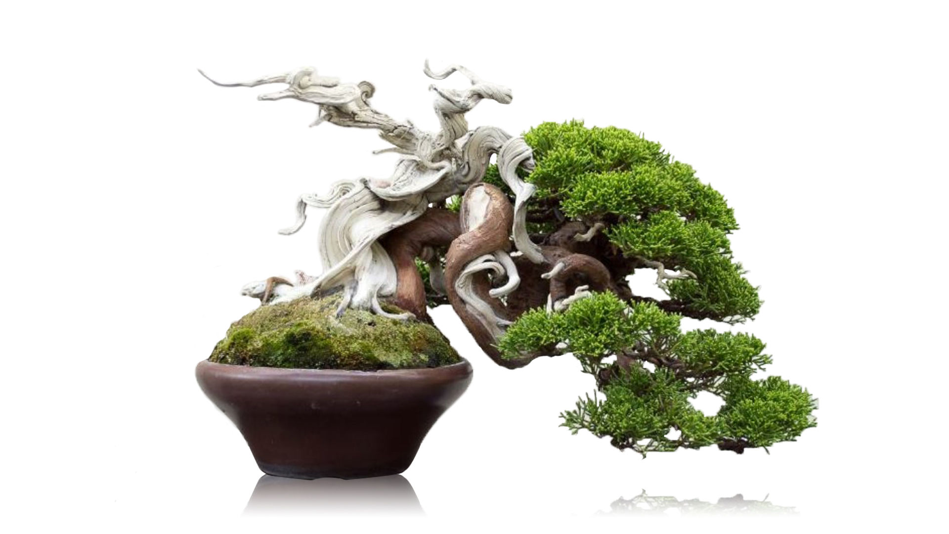 Bonsai (बोनसाई, 盆栽, or ‘tray planting’), is a Japanese art form using cultivation techniques to produce, in containers, small trees that mimic the shape and scale of full size trees.